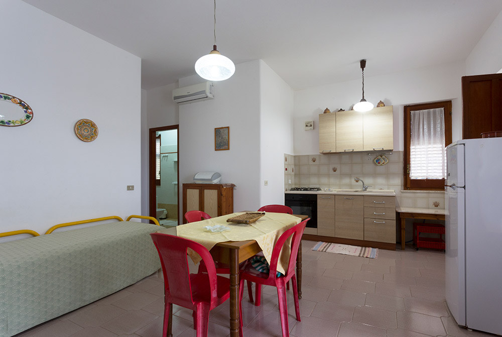 Il bilocale Rosso Tramonto è situato a piano terra di una villetta a schiera a 100 mt dalla spiaggia di San Vito Lo Capo.